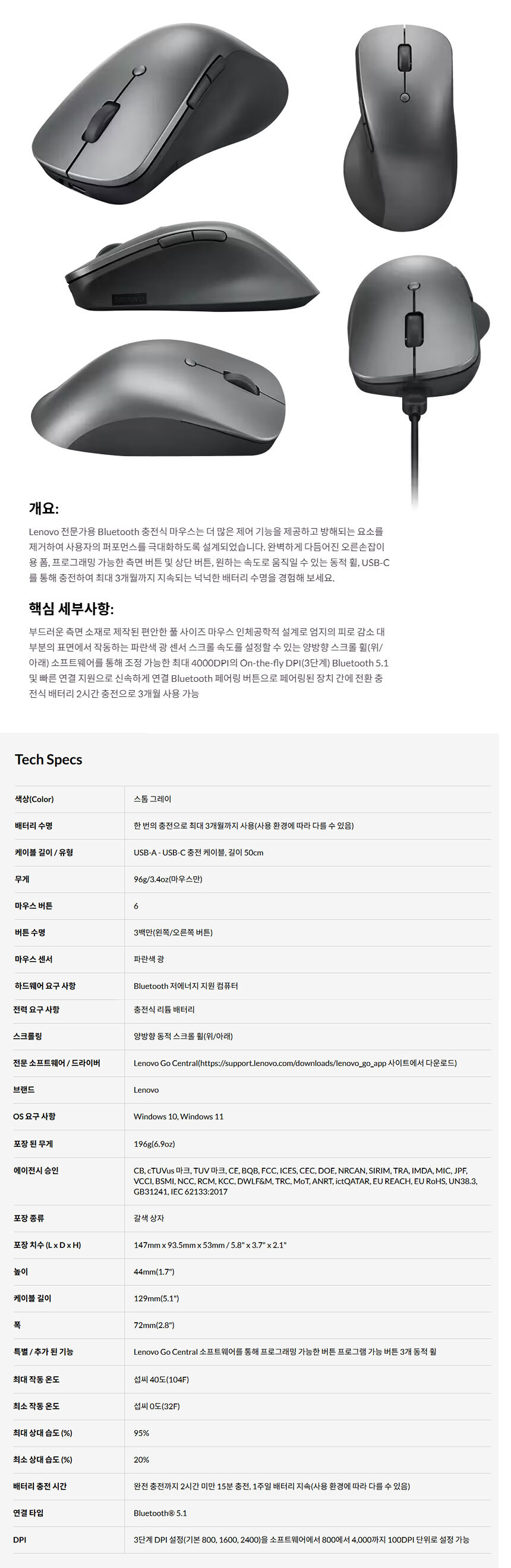 > Lenovo Àü¹®°¡¿ë Bluetooth ÃæÀü½Ä ¸¶¿ì½º Á¤Ç° »õÁ¦Ç° 4Y51J62544