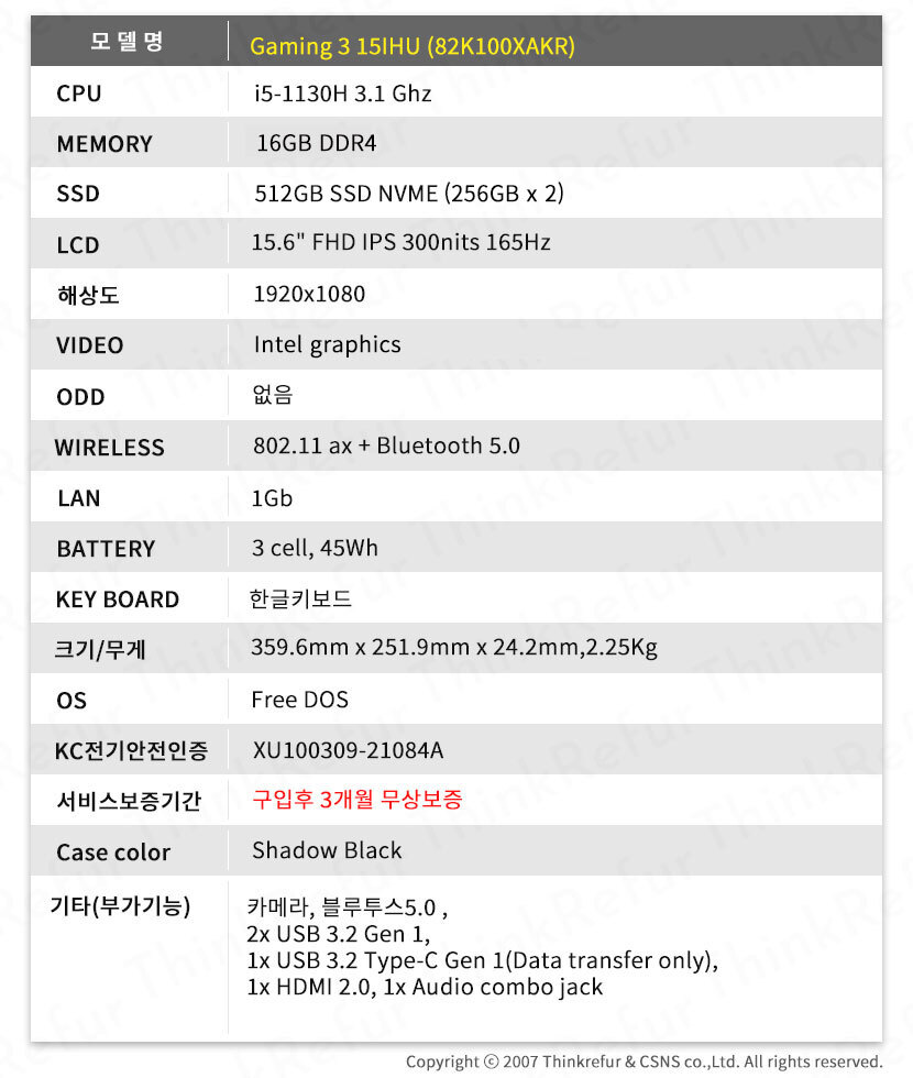 IdeaPad Gaming 3-15IHU 82K100XAKR - Intel ³»Àå ±×·¡Çȸ¸ »ç¿ë °¡´É